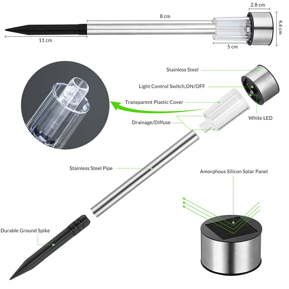 Ogni paletto è realizzato interamente in acciaio inossidabile 201 di altissima qualità materiale molto resistente agli agenti atmosferici e che garantisce una lunga durata, in un elegantissimo colore silver che rendono questo bellissimo set di lampade davvero particolare e uniche.