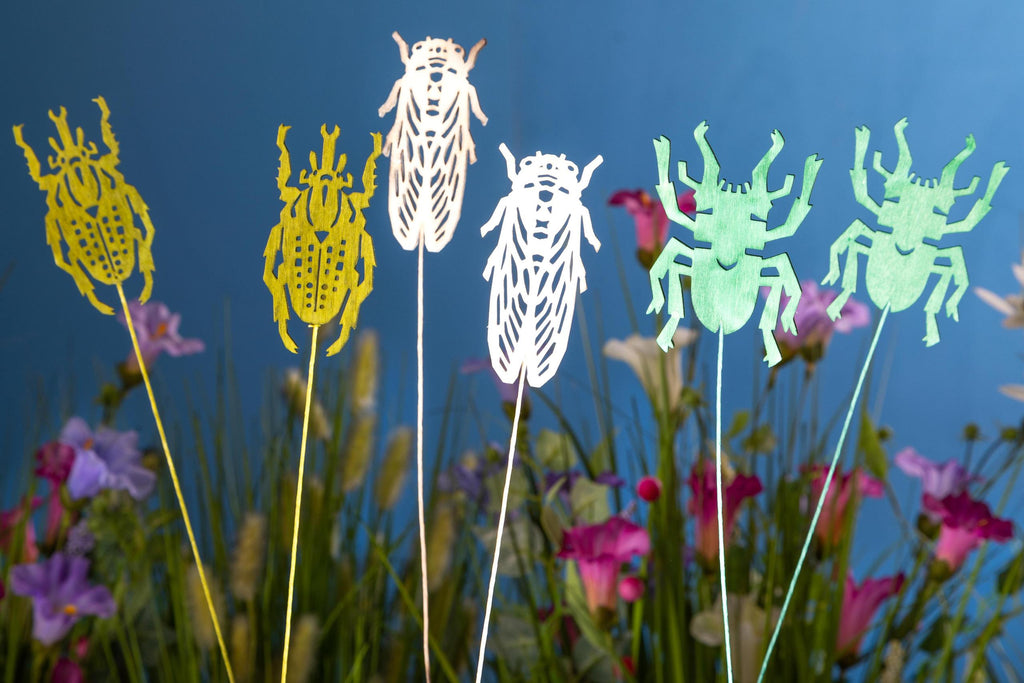 Lot de 24 pics artificiels avec cigale, scarabée et scarabée hauteur 30 cm