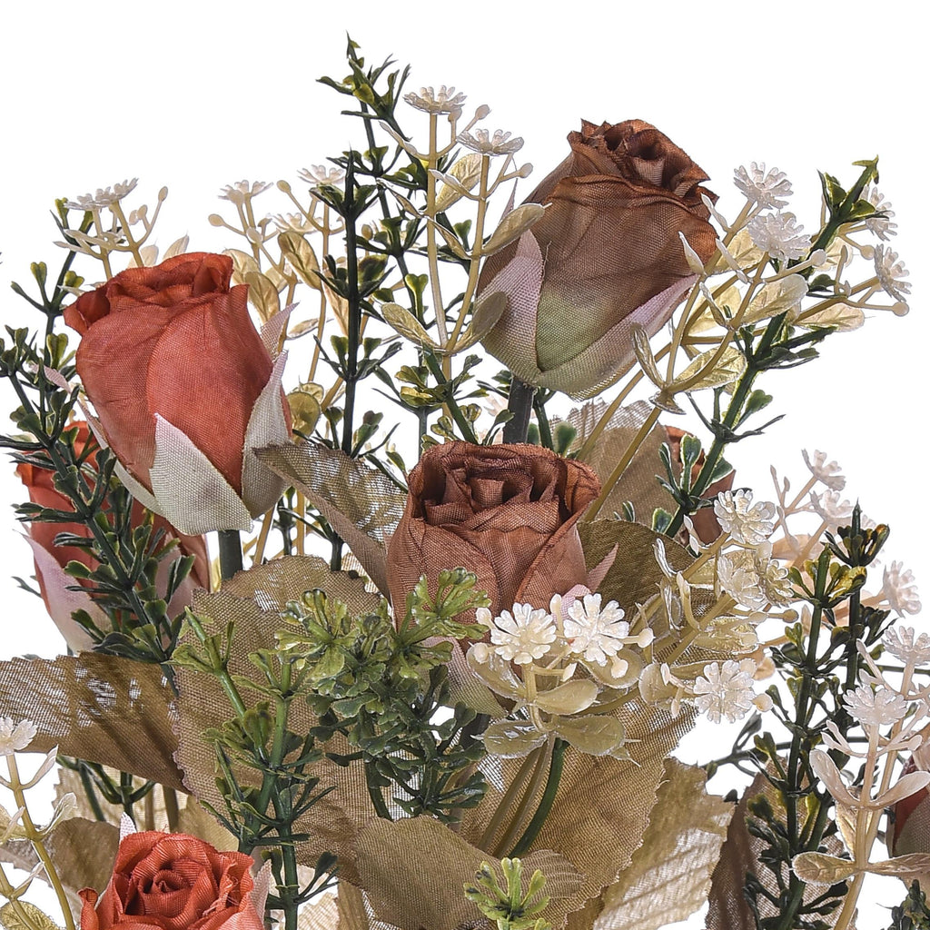 Set 4 Bouquets Artificiels avec 9 Boutons de Rose Romantiques Hauteur 40 cm Marron/Cerise/Bordeaux
