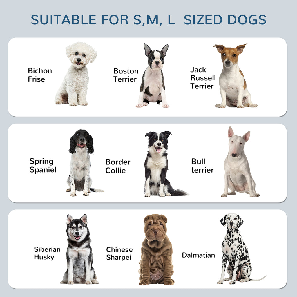 - Adatto a cani di taglia piccola (altezza alla spalla: 25-40 cm), cani di taglia media (altezza alla spalla: 40-50 cm, 45-55 cm), e cani di taglia grande (altezza alla spalla: 50-60 cm).