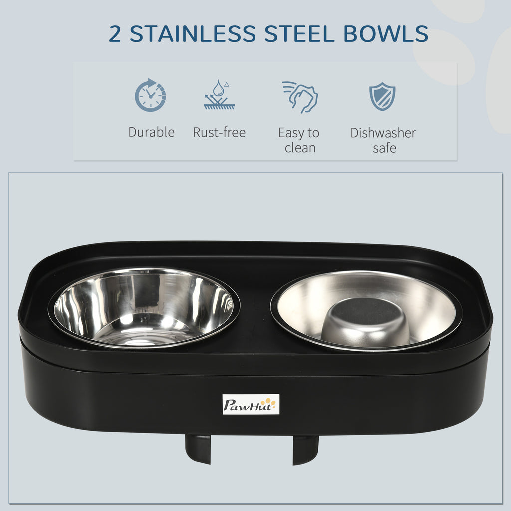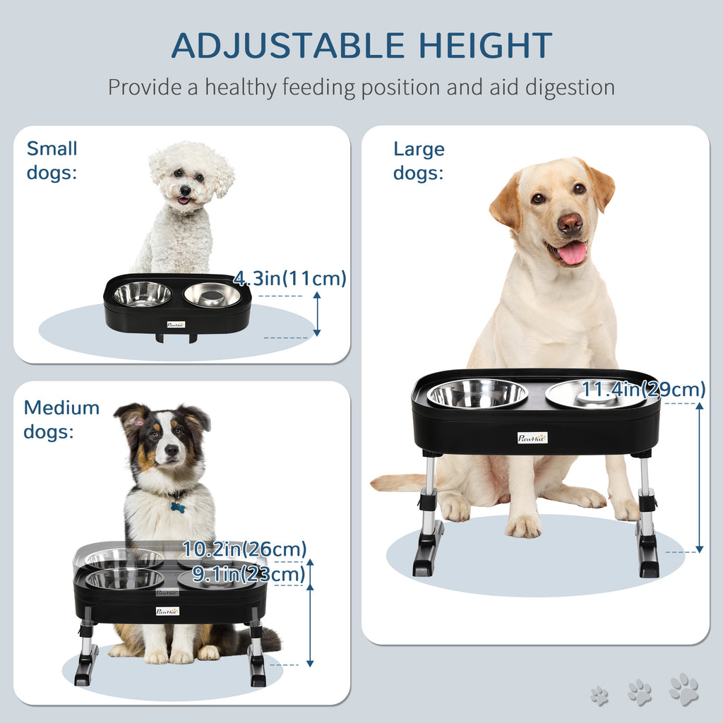 2 Ciotole per Cani Rialzate Altezza Regolabile in Acciaio Inox e PP Nero