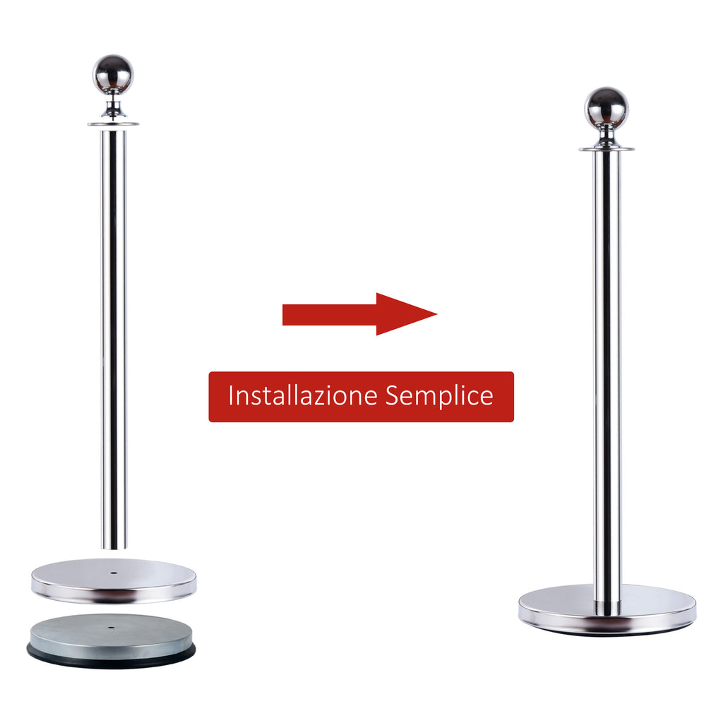 2 Colonnes Separacode Argent avec Corde Rouge en Acier Inoxydable Ø32x95 cm