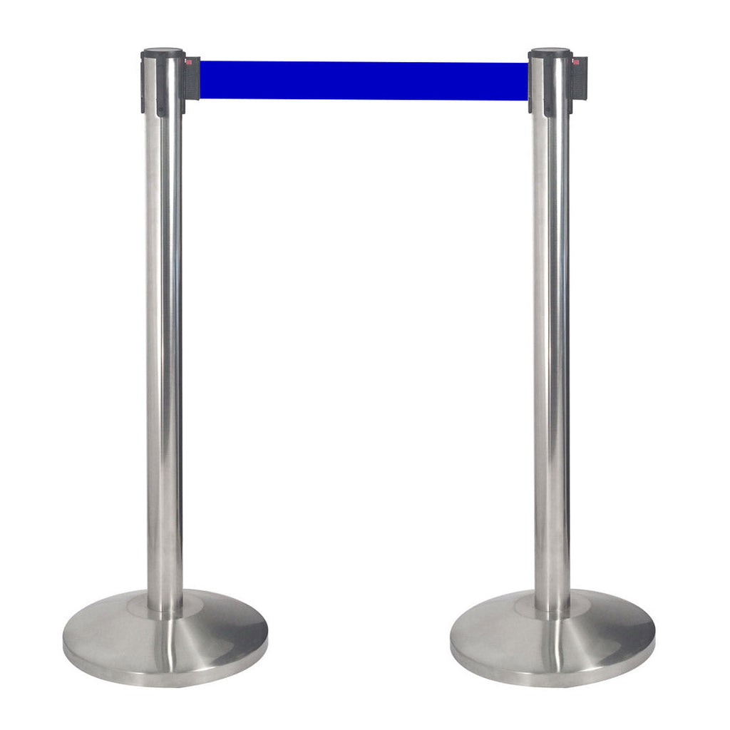 2 colonnes de rideaux de 3 mètres en Inox Brossé Ø36x101 cm Ruban Bleu