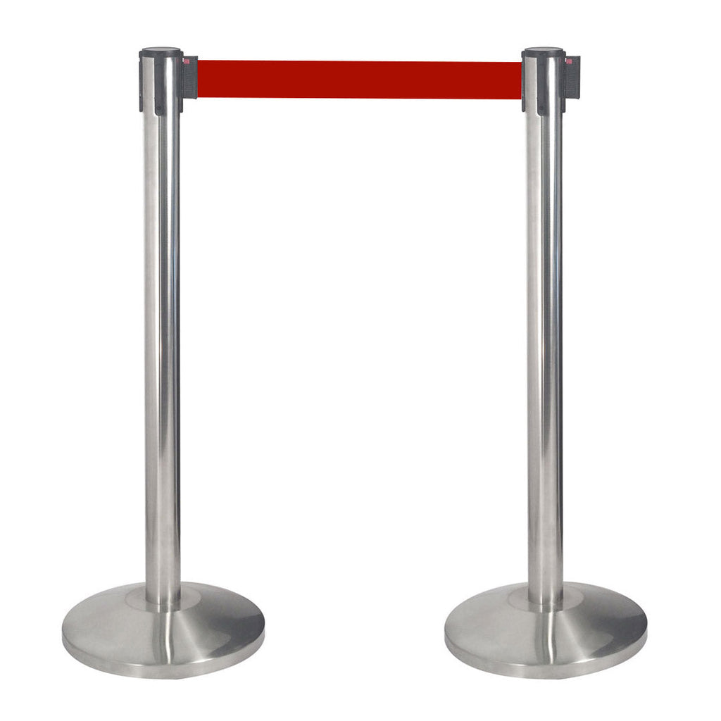 2 Colonnes de Ruban 3 mètres en Inox Brossé Ø36x101 cm Ruban Rouge