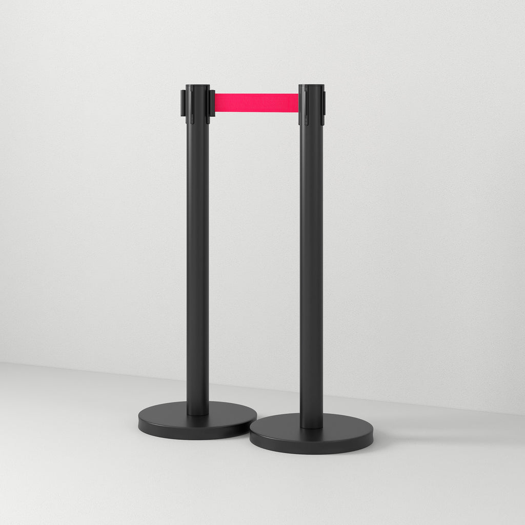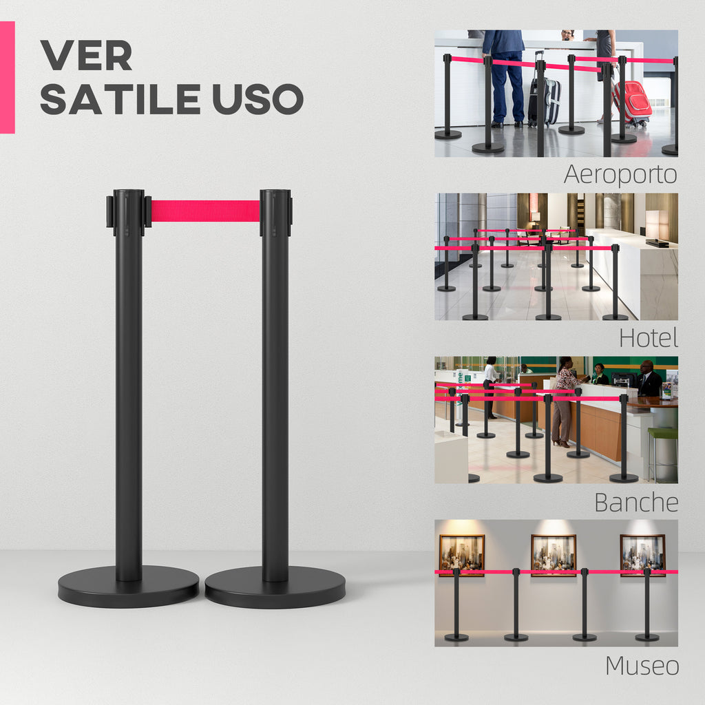 2 Colonnine Tendinastro di 2 m in Acciaio Inox Nero Ø32x90 cm Nastro Rosso
