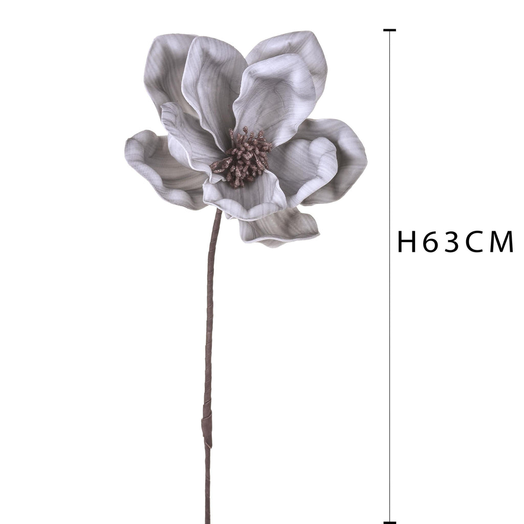 Lot de 3 fleurs de magnolia artificielles hauteur 63 cm gris