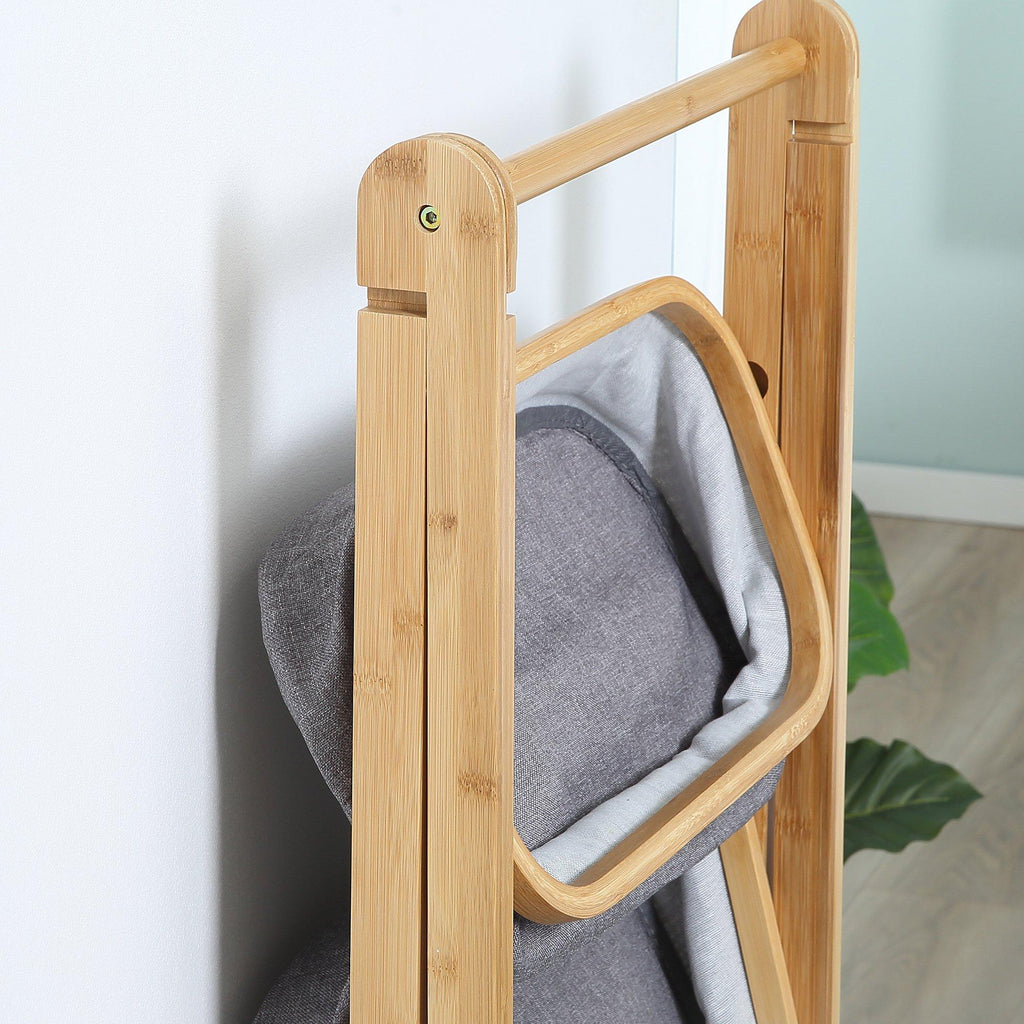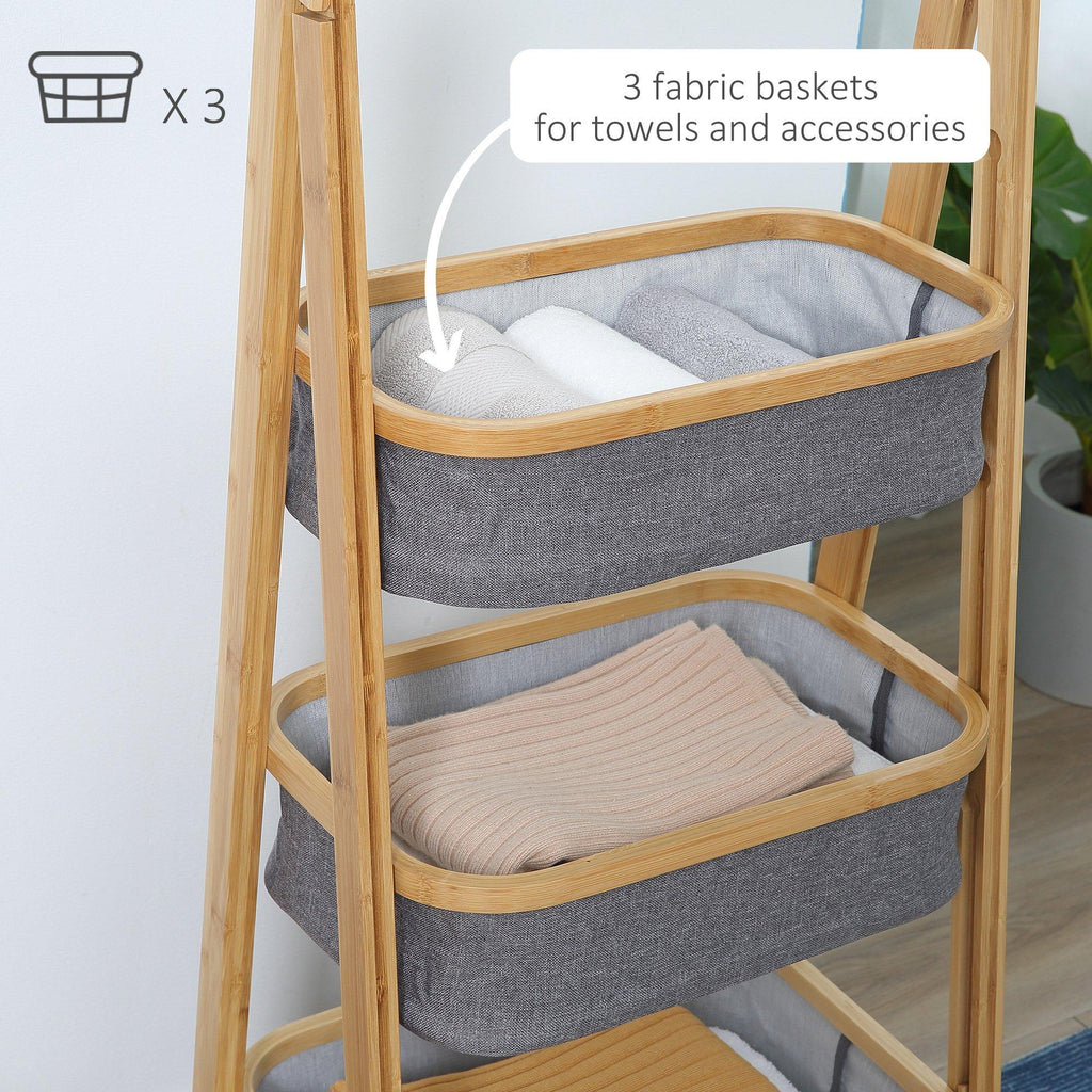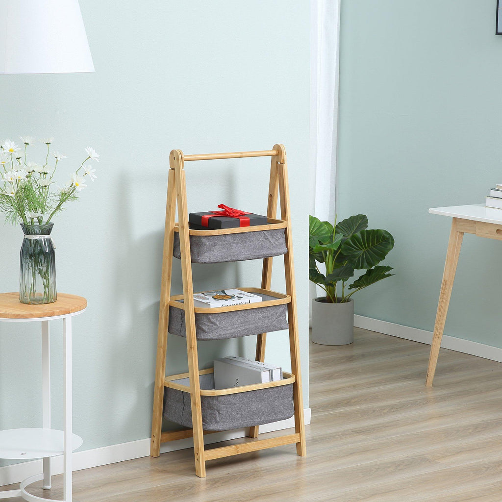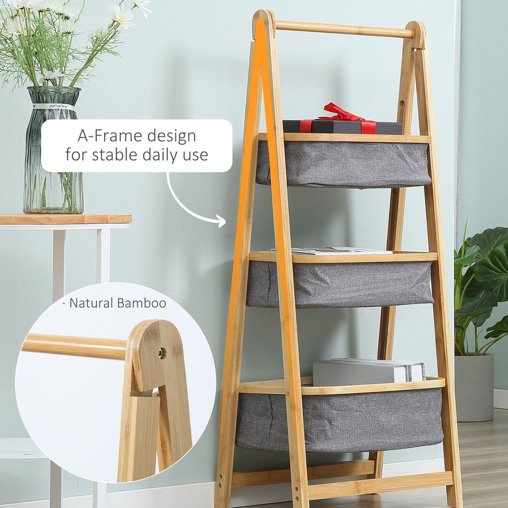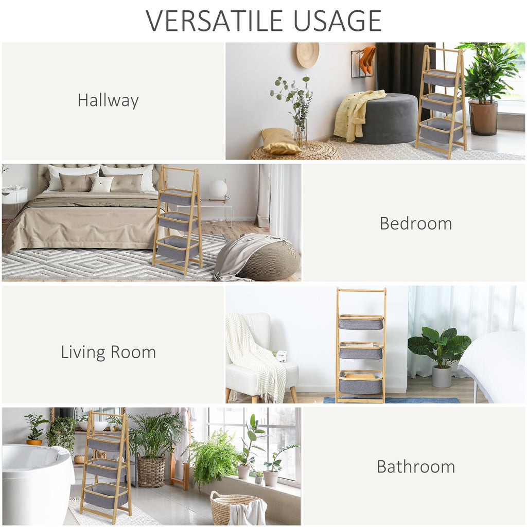 3 Paniers en Tissu avec Support Pliant 45x31,5x108 cm en Bambou Gris