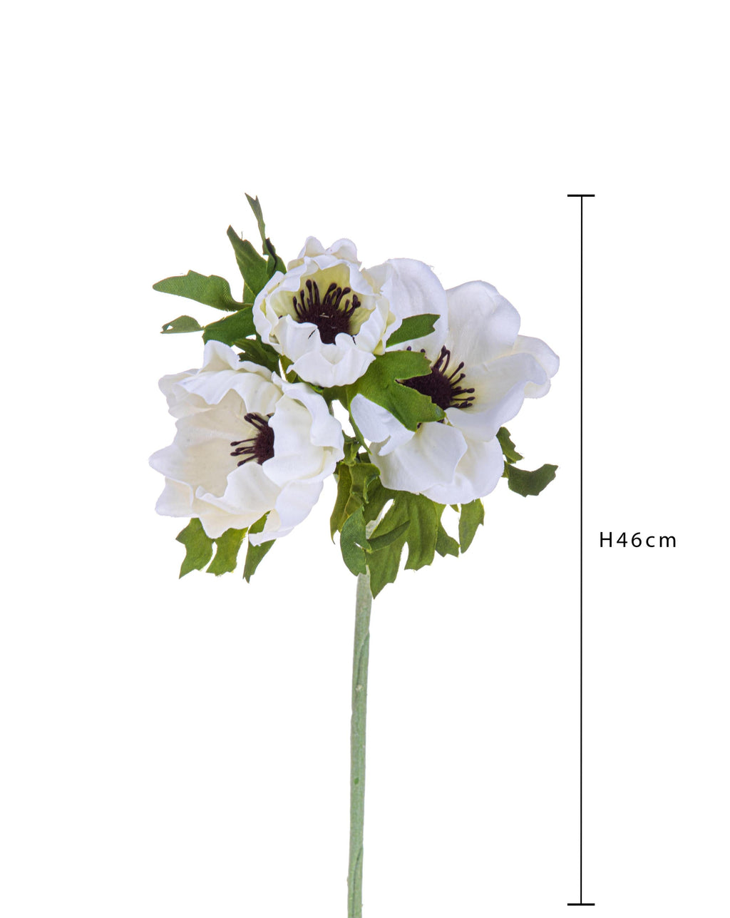 Set 8 Fleurs Artificielles d'Anémone Composé de 3 Fleurs Hauteur 46 cm Blanc