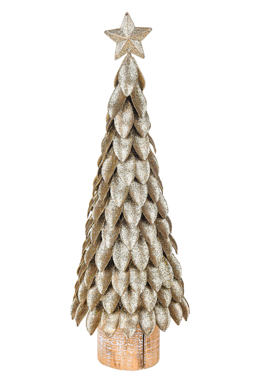 Sapin en Métal à Paillettes Dorées H32 cm