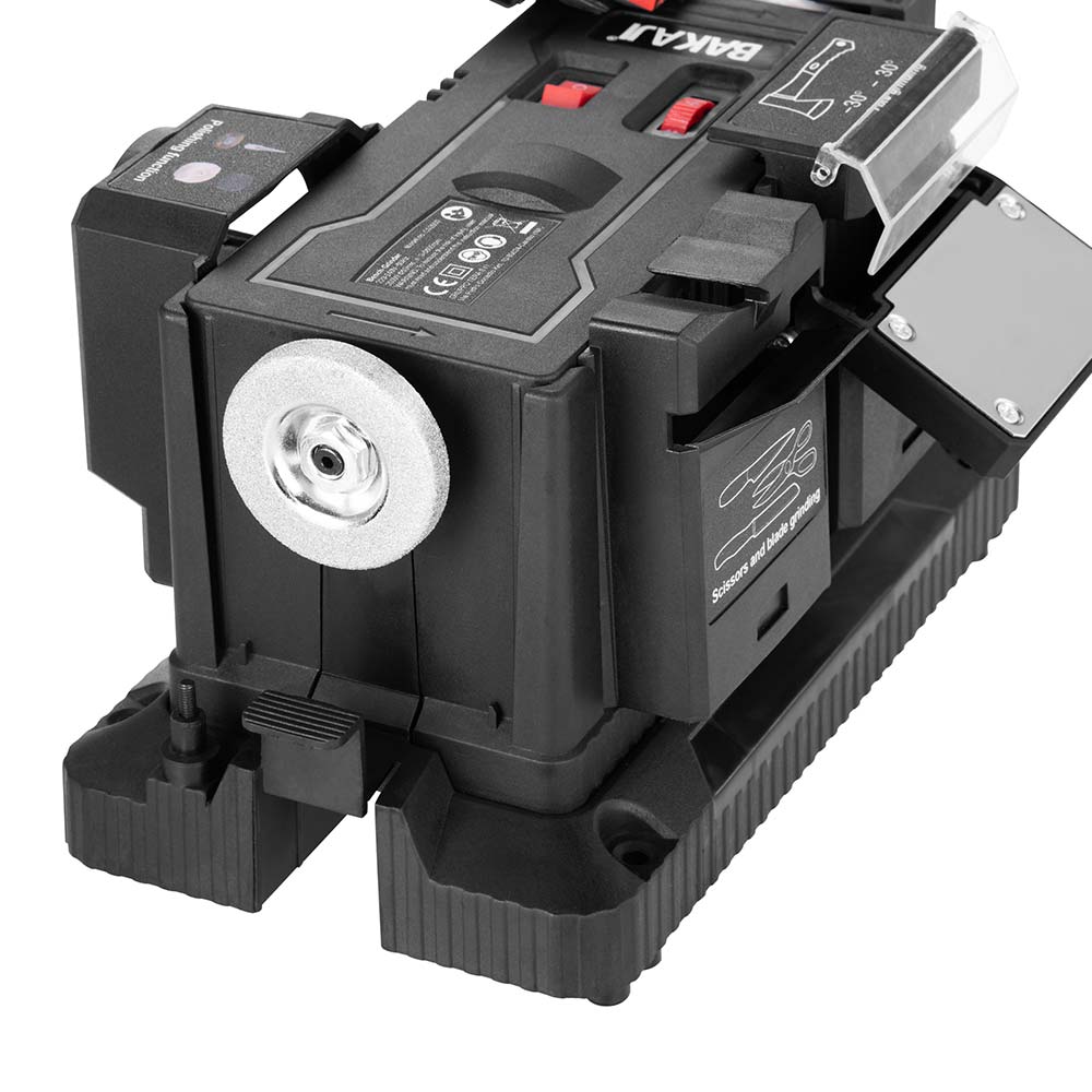 Alimentato da un potentissimo motore da 200 Watt che garantisce una potenza massima di rotazione della ruota affilatrice da 0 a 6500 rpm che non danneggia la lama e assicura un lavoro pulito e preciso inoltre l'angolazione regolabile permette di affilare con facilità qualsiasi tipo di attrezzatura in ogni suo lato.