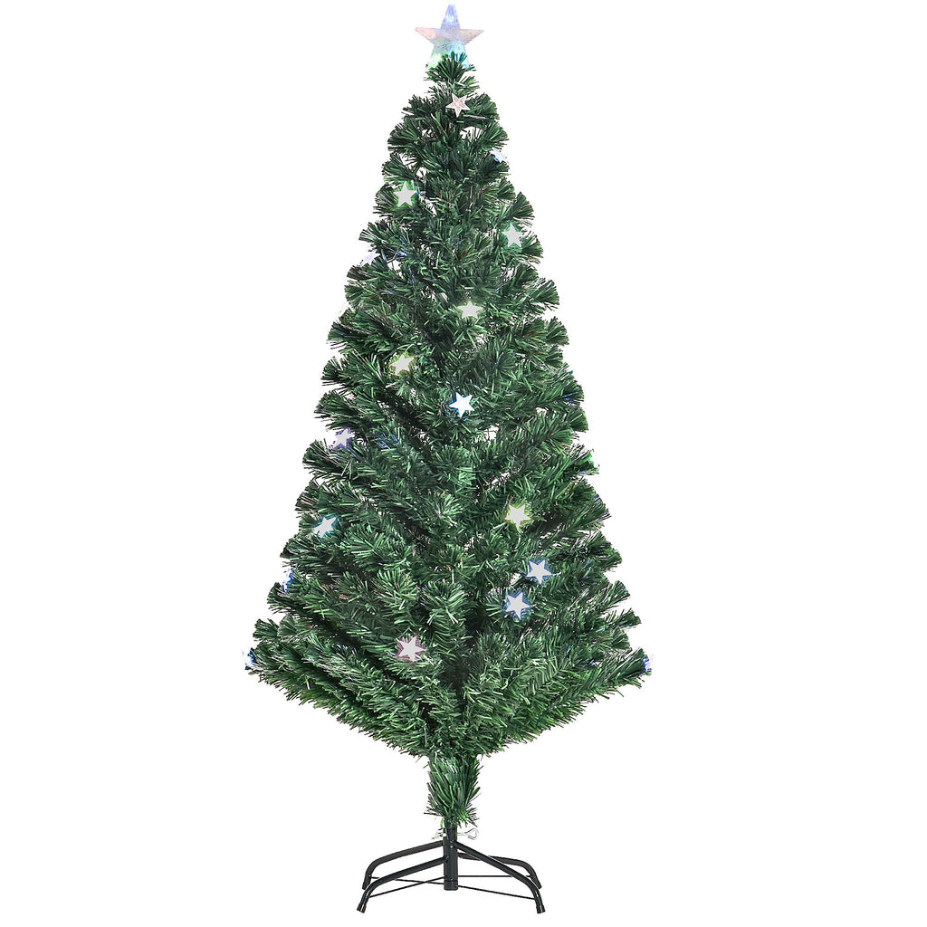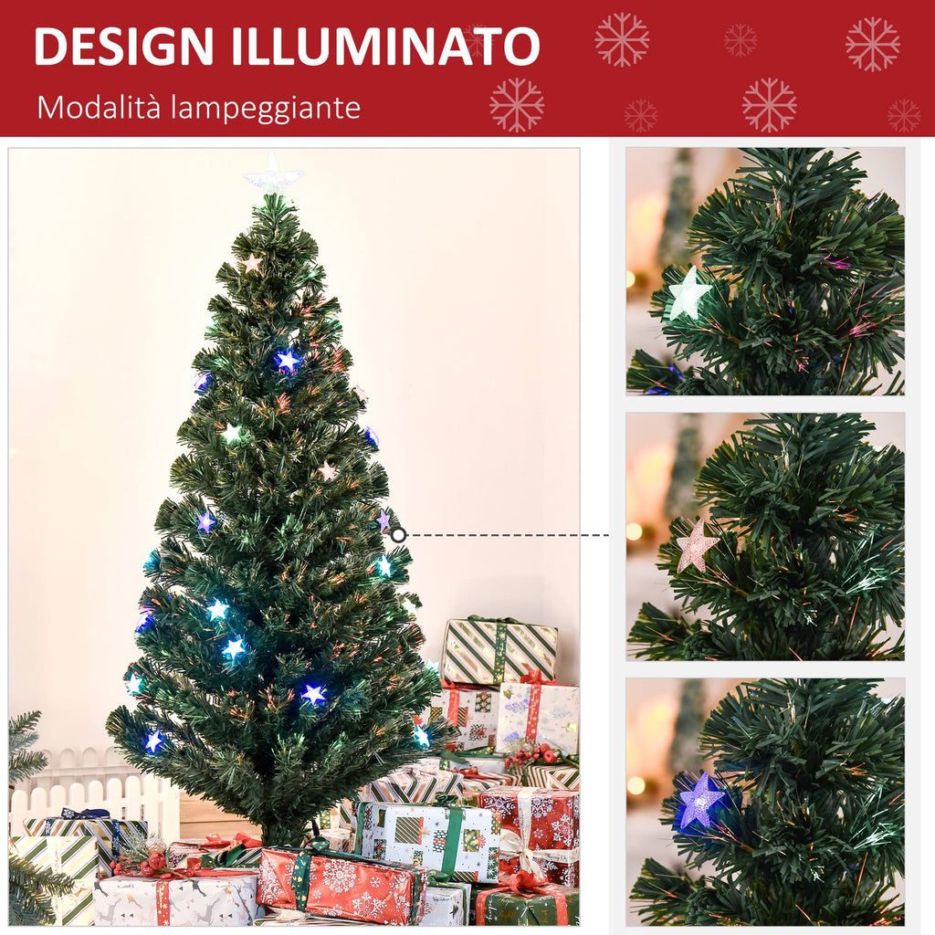 Sapin de Noël Artificiel 150 cm 180 Branches 36 Lumières LED et Fibre Optique Colorée Vert