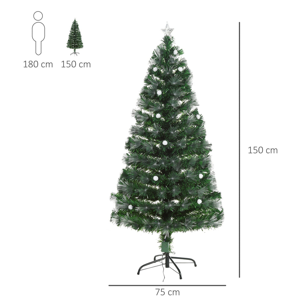 Sapin de Noël Artificiel 150 cm 180 Branches avec LED Fibre Optique Pin Vert Clair