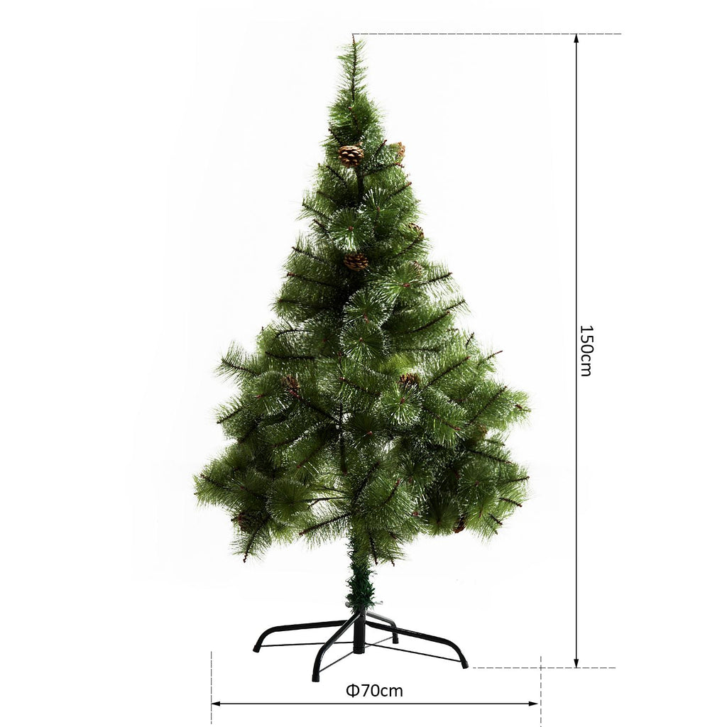 Sapin de Noël artificiel 150 cm 229 branches avec 35 pommes de pin