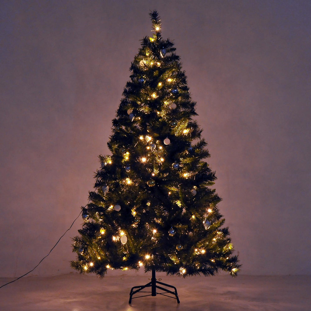 Sapin de Noël Artificiel 180 cm 200 LED et Boules Décoratives Vertes
