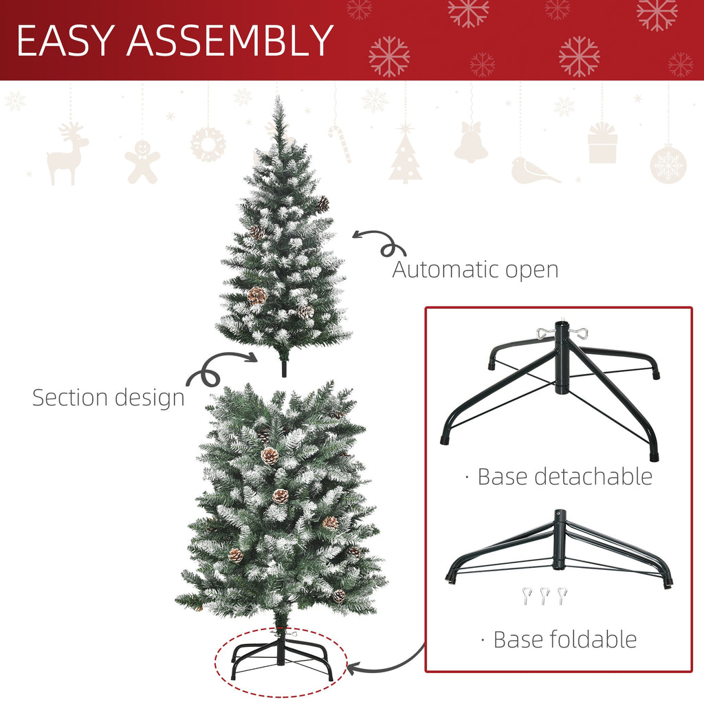 Albero di Natale Artificiale Innevato 150 cm 464 Rami e 28 Pigne Verde e Bianco