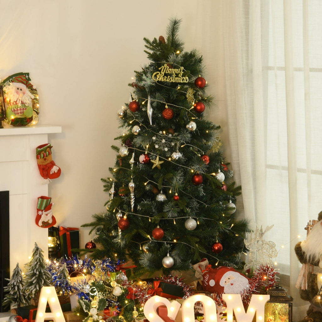 Décorez votre maison avec ce sapin de Noël ! Avec des pommes de pin cachées dans les arbres, certaines branches sont parsemées de neige, très attrayantes. En le mettant dans la maison, votre famille ressentira une scène après la fonte des neiges. Base métallique pliante, durable, pratique pour le rangement. 770 branches en PVC et PE offrent suffisamment d'espace pour les décorations de Noël.