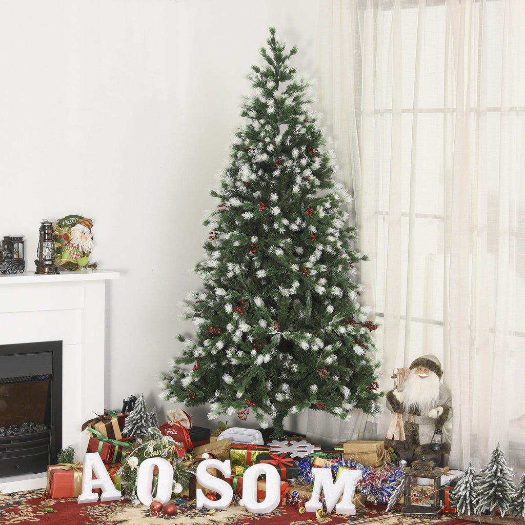 Sapin de Noël artificiel enneigé 180 cm 836 branches avec baies rouges Pin vert
