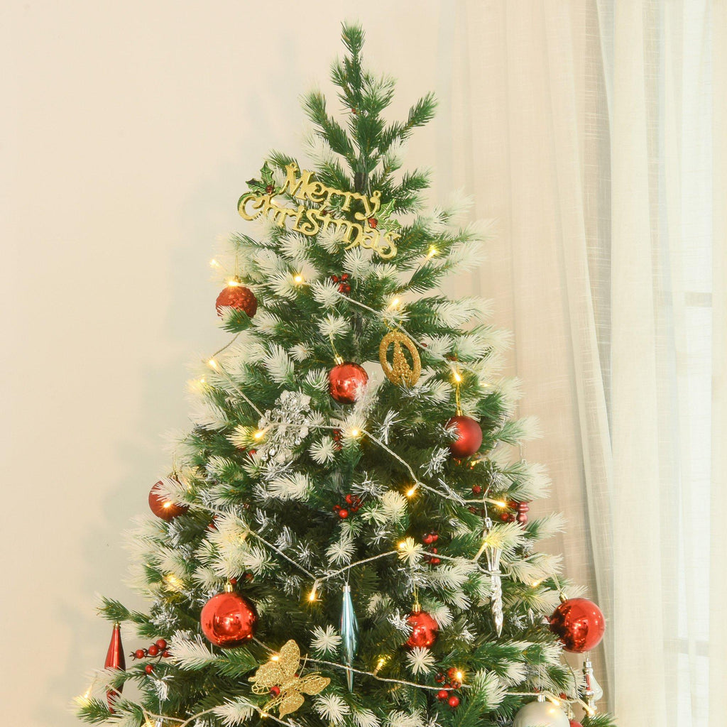 Sapin de Noël Artificiel Enneigé 210 cm 1172 Branches avec Baies Rouges Pin Vert