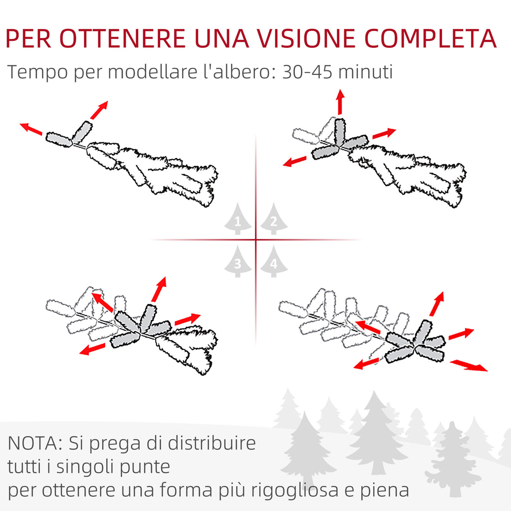 • Nota: Solo per uso interno, non per esterno. Per ottenere un aspetto rigoglioso, si prega di distendere tutte le punte dei rami. Possono essere necessari 30-45 minuti per modellare l'albero