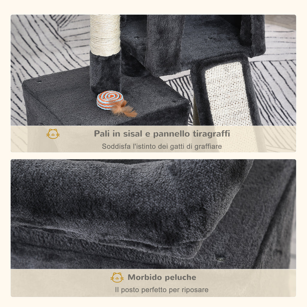 - CORDE DE SISAL : Les griffoirs sont recouverts de corde de sisal et sont parfaits pour satisfaire l'instinct naturel des chats et chatons adultes d'aiguiser leurs ongles. Gratter les poteaux en sisal sera plus amusant que de gratter le canapé ou les meubles ! DOUX ET CONFORTABLE : La doublure en peluche rend cette salle de sport pour chat confortable pour jouer et se détendre avec une sieste