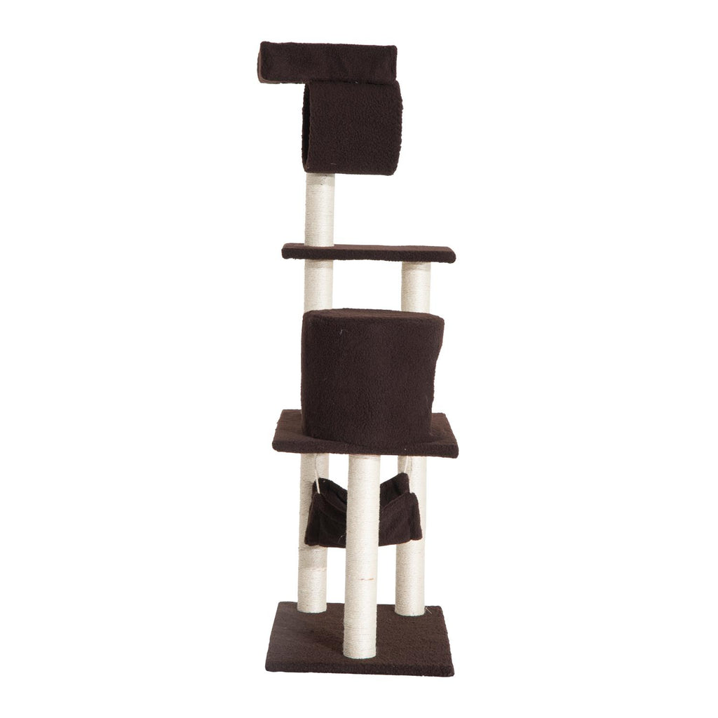 Arbre à chat avec revêtement en cuir marron foncé 58x40x140 cm