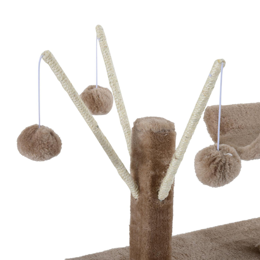 Arbre à chat en bois avec revêtement doux marron clair 60x35x135 cm