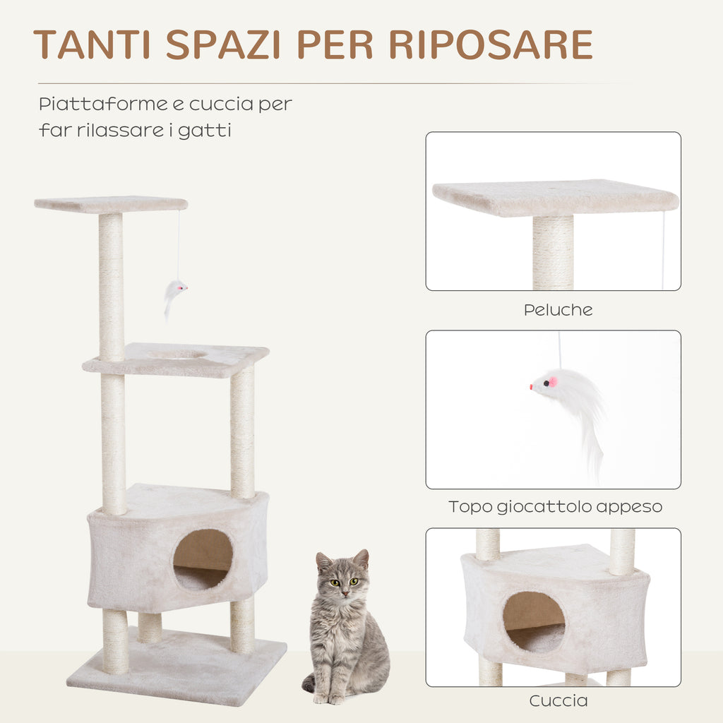 Arbre à chat pour chats 3 niveaux crème 49x48x130 cm