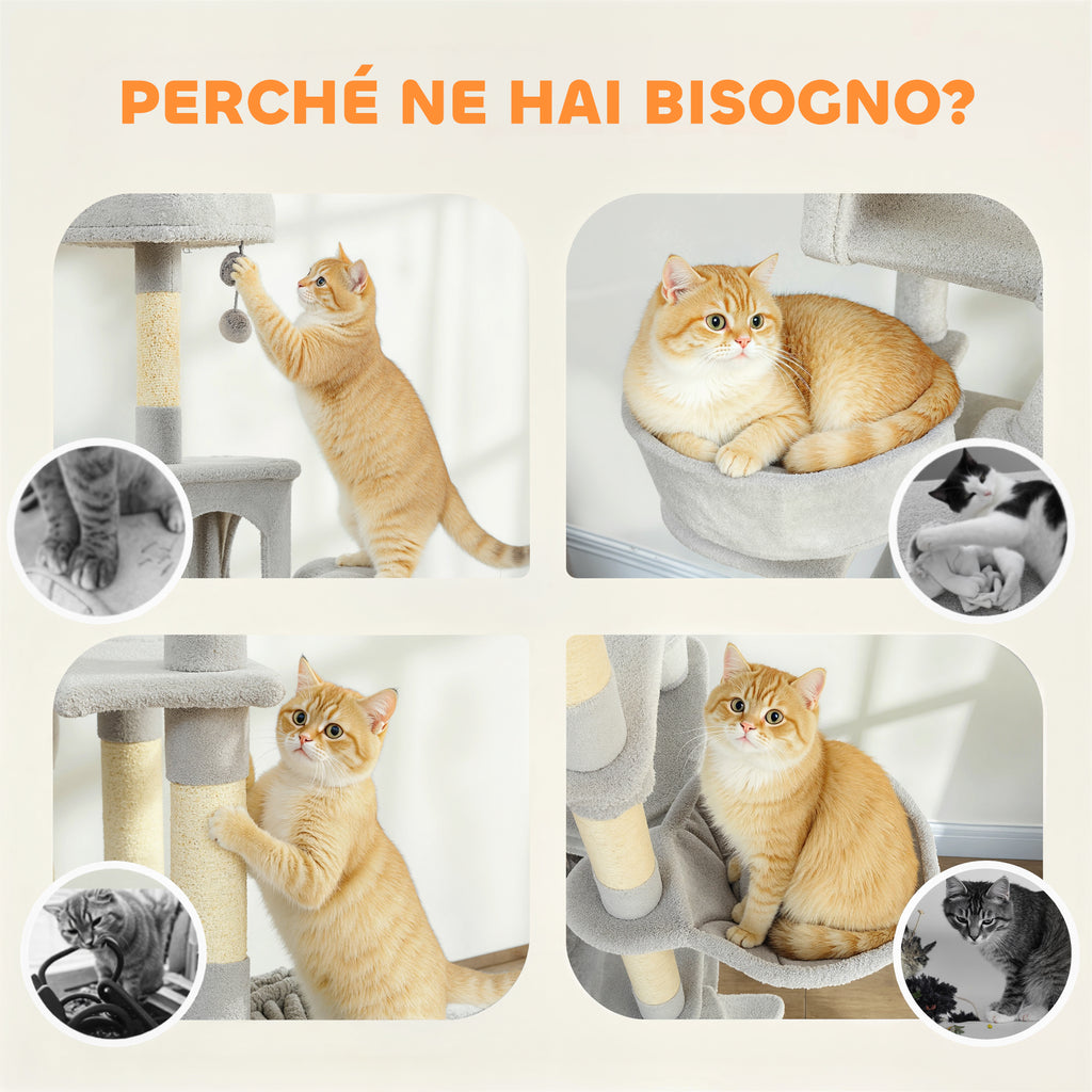 • PARCO GIOCHI FELINO: Questo albero per gatti alto 192 cm offre un'area di gioco rialzata per 2-3 gatti, in modo da divertirsi in gruppo e godere di un'ampia una vista panoramica sottostante