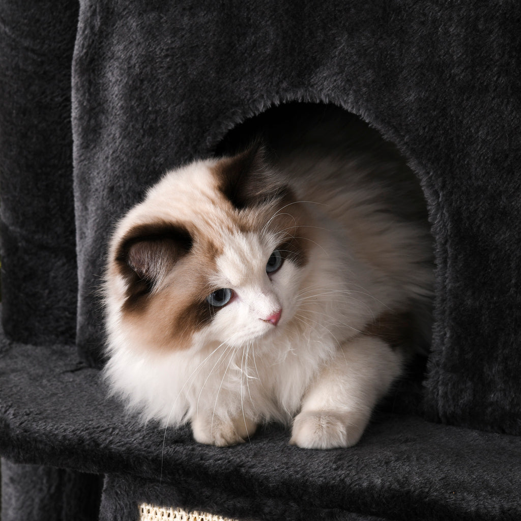 - TOUT-EN-UN : Cet arbre à chat a une hauteur de 210 à 240 cm et peut être fixé au plafond pour plus de stabilité. Il comprend des plates-formes, une maison, un hamac, un ballon suspendu et une corde, pour faire de la place à vos chats pour s'amuser et se reposer.