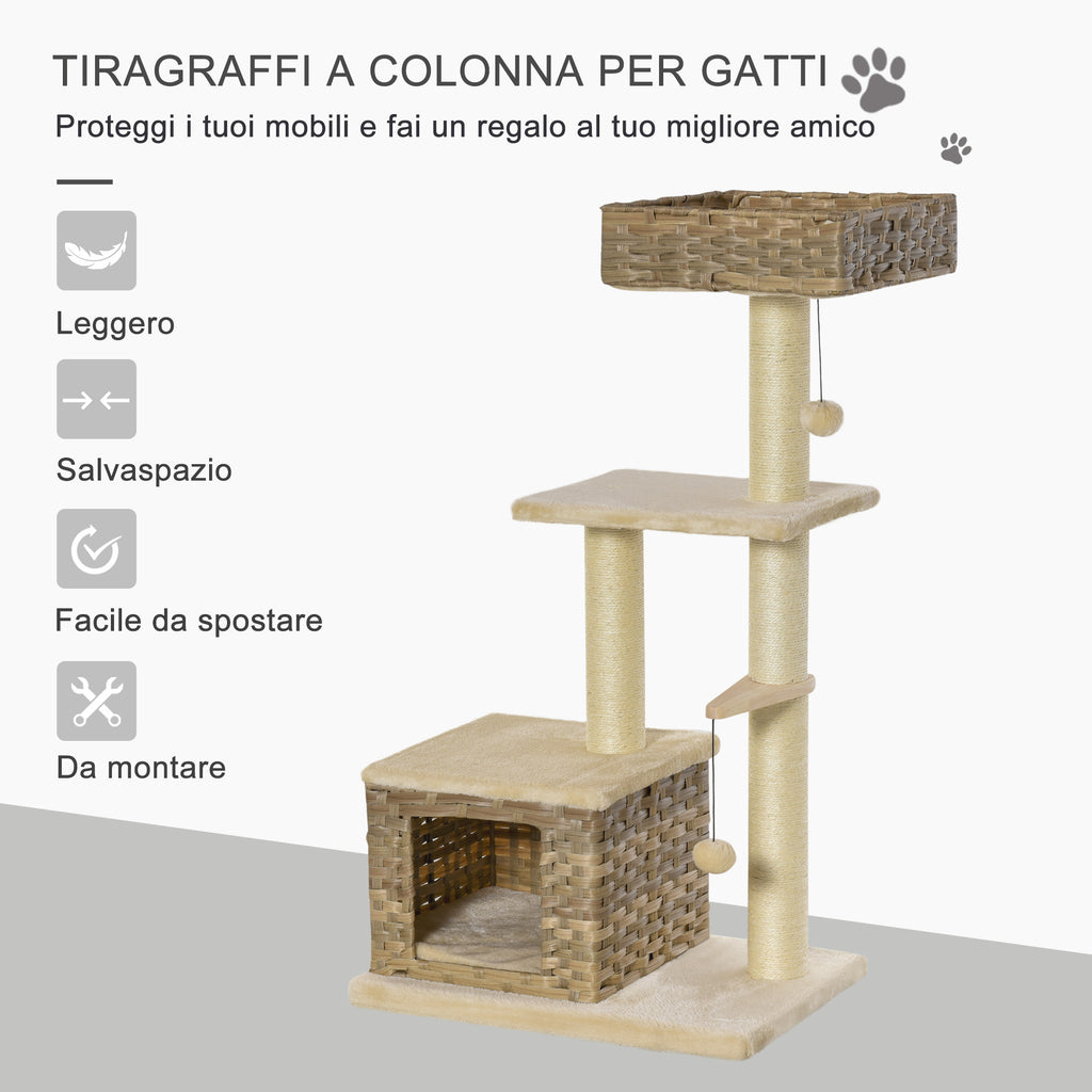 Arbre à chat pour chats 60x40x109 cm avec niche en corde beige