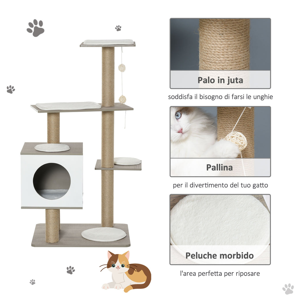 - POLYVALENT: Il a des plates-formes positionnées à différentes hauteurs, des poteaux en jute, une maison pour se reposer et des tapis moelleux pour faire une sieste.