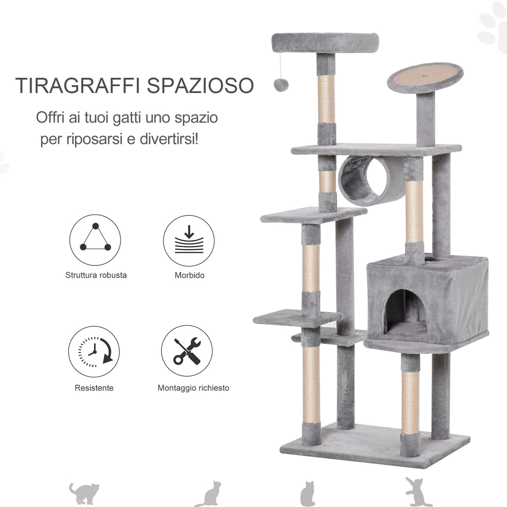 - PER GIOCARE E RIPOSARE: Questo albero tiragraffi con 5 livelli, casetta, pallina sospesa e graffiatoio è perfetto per gattini e gatti adulti di massimo 4.5kg.