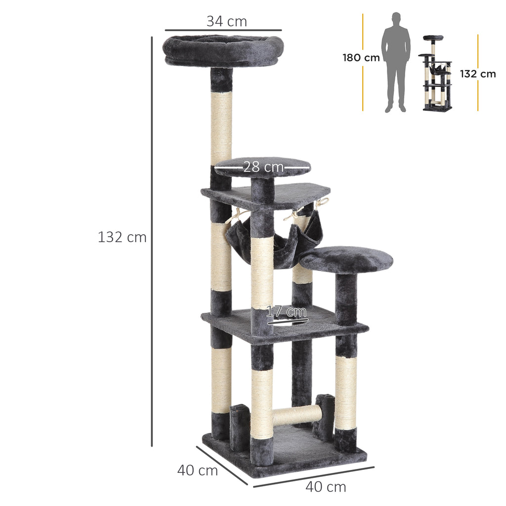 Arbre à chat à 4 étages pour chat en peluche sisal gris naturel 40x40x132 cm