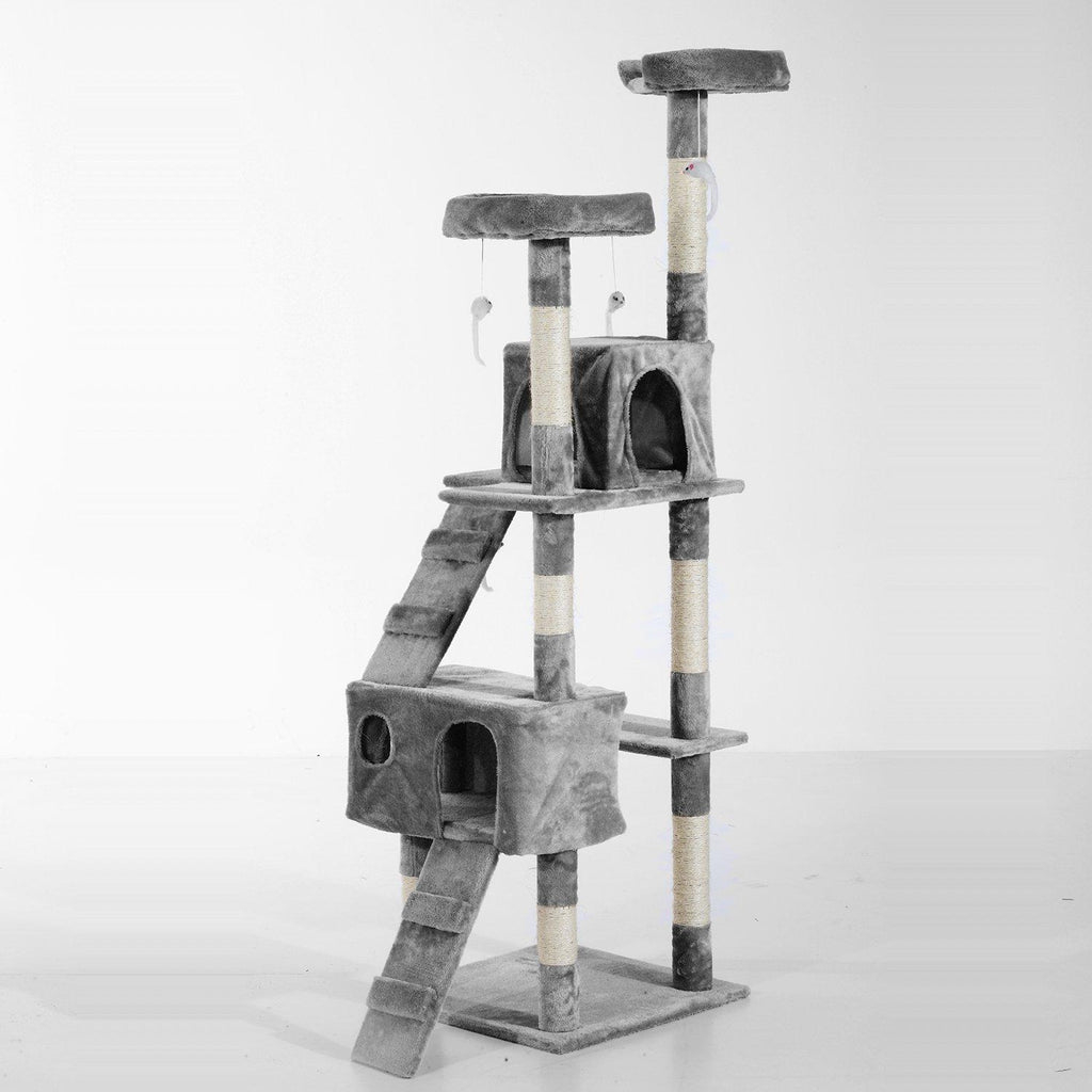 Arbre à chat pour chats avec deux niches en peluche et sisal gris 50x50x170 cm