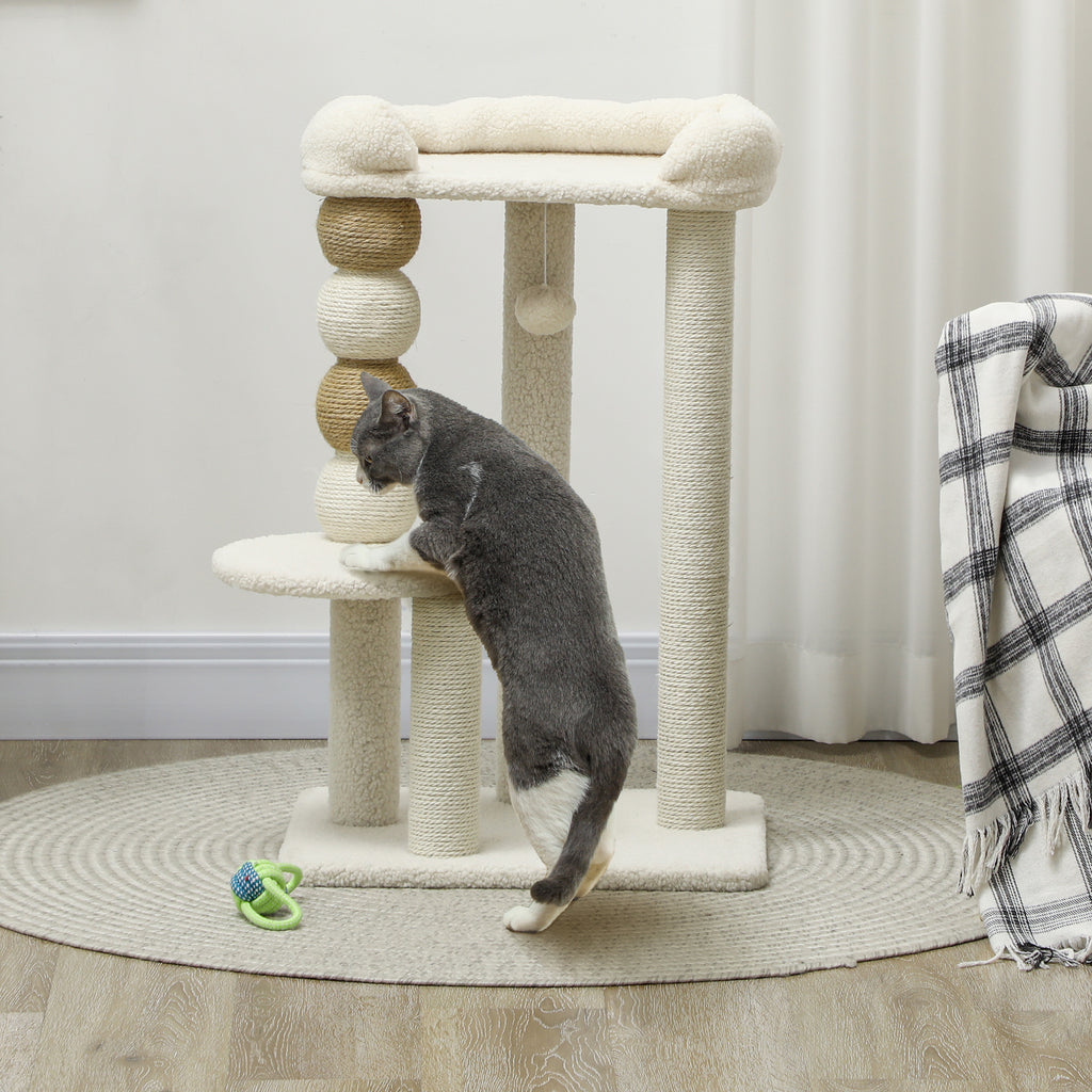 Albero Tiragraffi per Gatti con Lettino 48,5x40x76 cm in Peluche e Iuta Beige