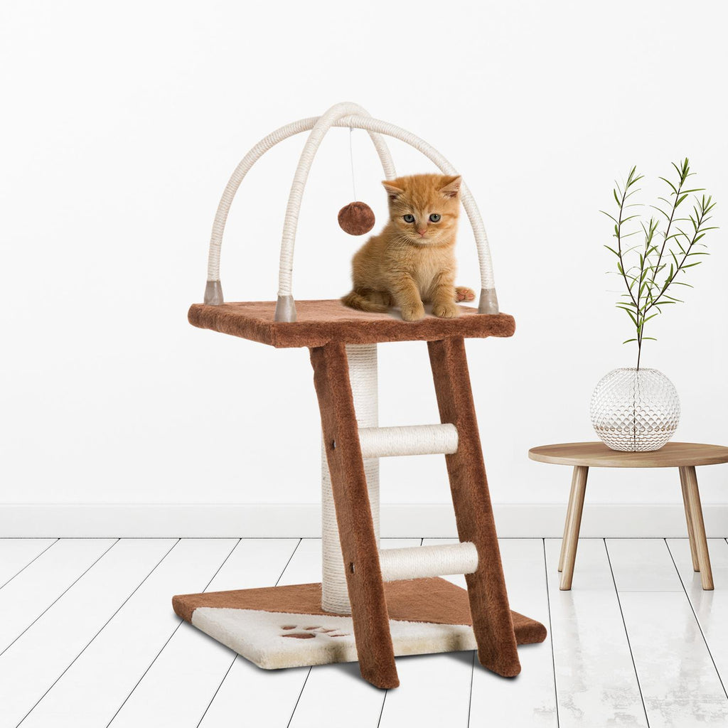 Arbre à chat pour chat avec échelle et boules en sisal marron et blanc 40x40x70 cm