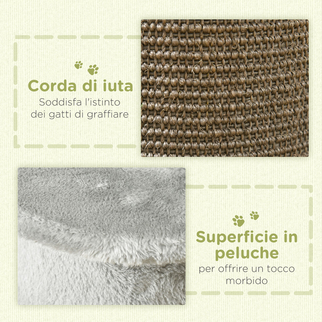Albero Tiragraffi per Gatti max 5 Kg 34x25,5x58 cm con 2 Palline in Peluche e Sisal Grigio