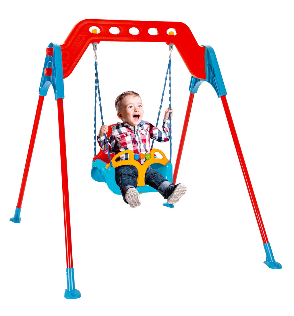 Balançoire de jardin 1 place 145x125x136 cm Cordes en métal rouge et bleu