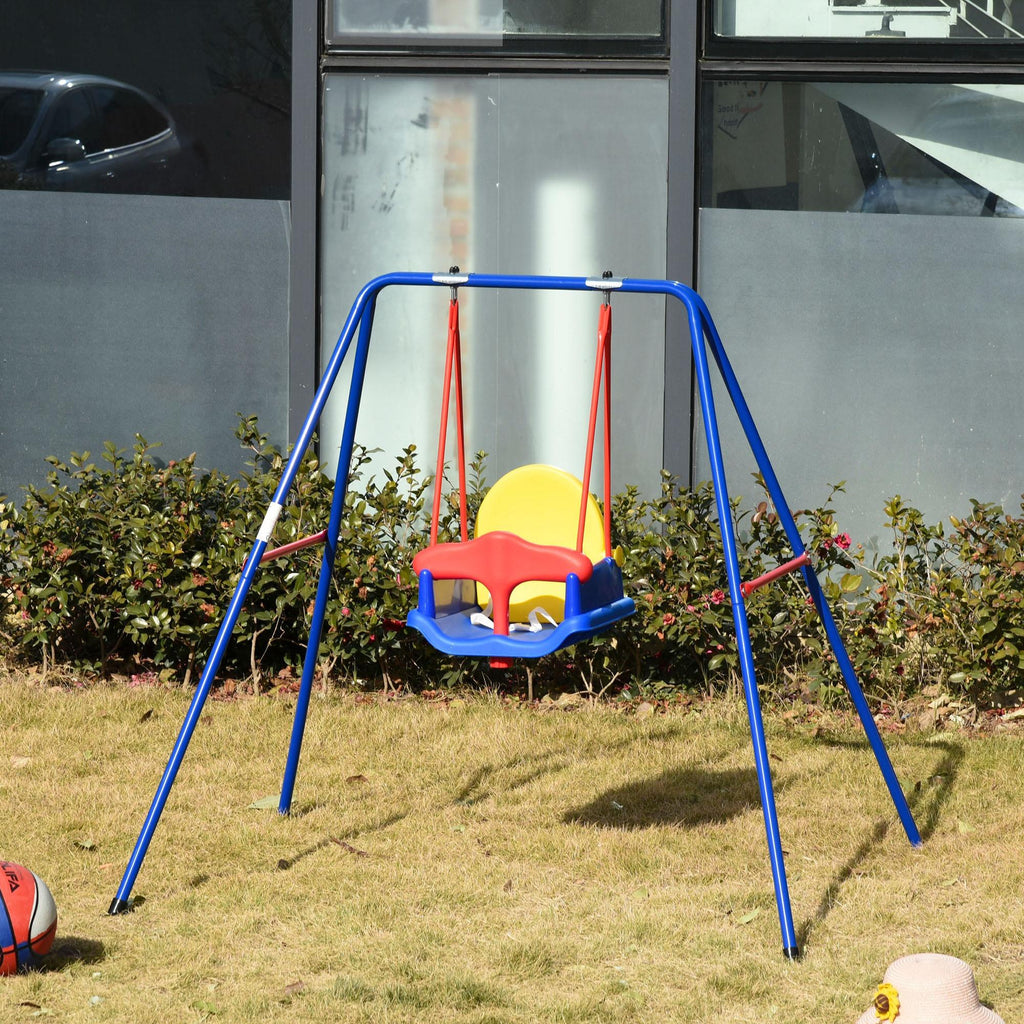 Balançoire de jardin pour enfants 140x110x120 cm, siège avec ceinture de sécurité multicolore