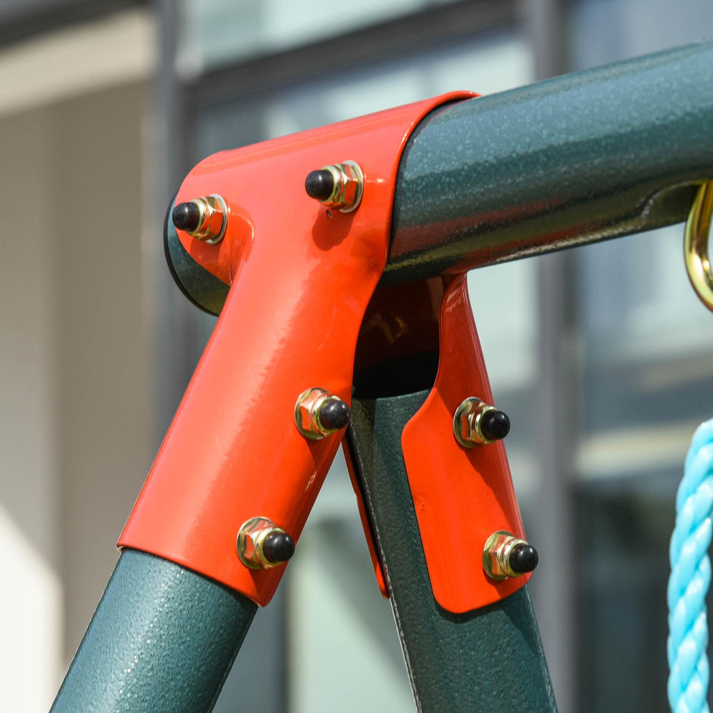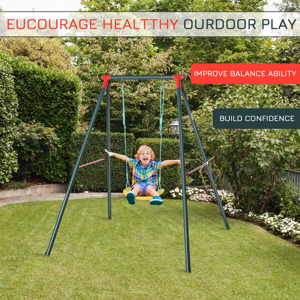 - CONSTRUCTION SOLIDE : La structure est en métal renforcé avec revêtement en poudre, pour durer longtemps. Le cadre en forme de A peut être fixé au sol avec 4 piquets pour augmenter la stabilité et la sécurité de cette balançoire pour enfants