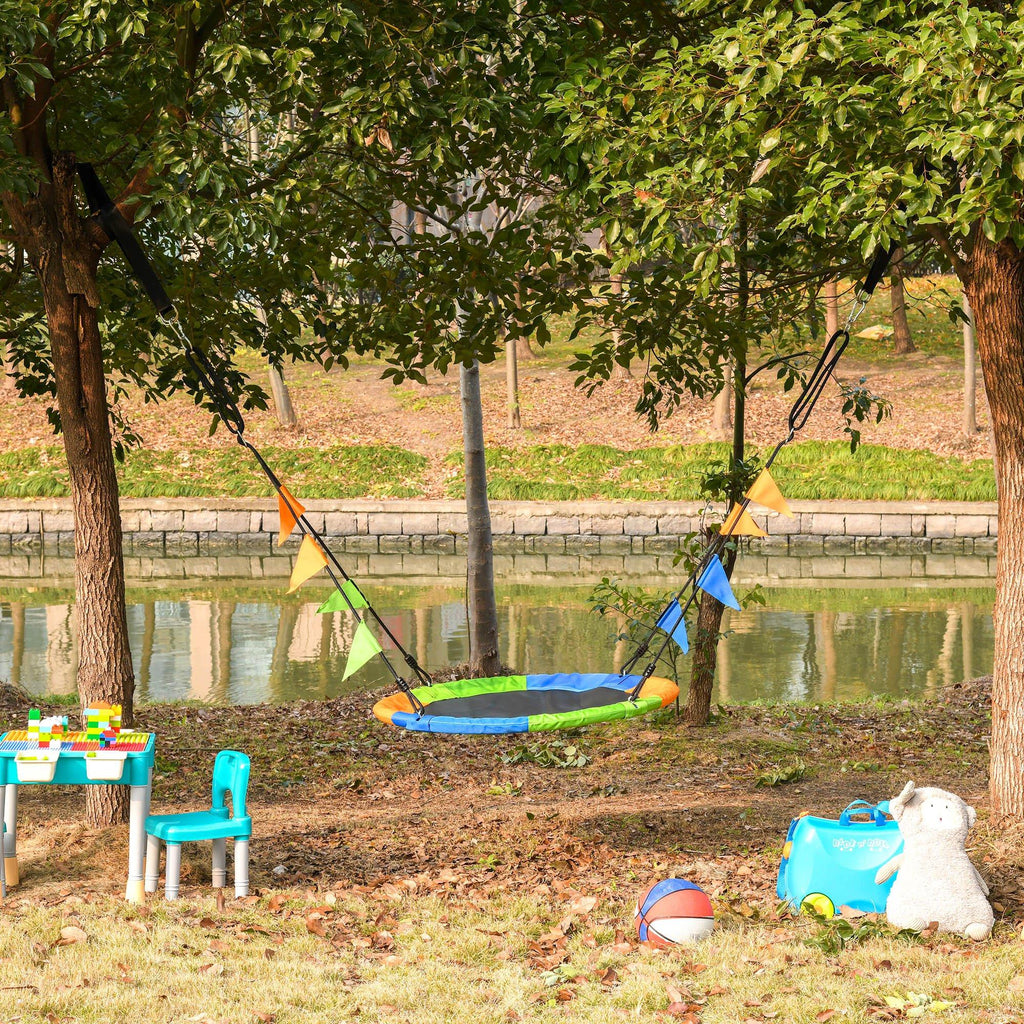 - CORDES RÉGLABLES : Vous pouvez régler la hauteur de la balançoire nid en fonction des caractéristiques de votre espace et de la taille de vos enfants