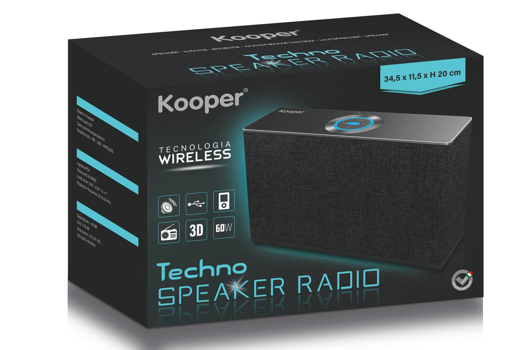 Caractéristiques techniques Enceinte sans fil 60 W avec radio en tissu Techno Kooper noir