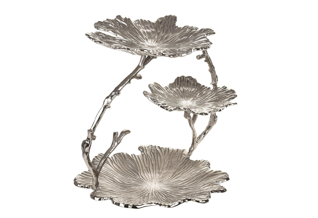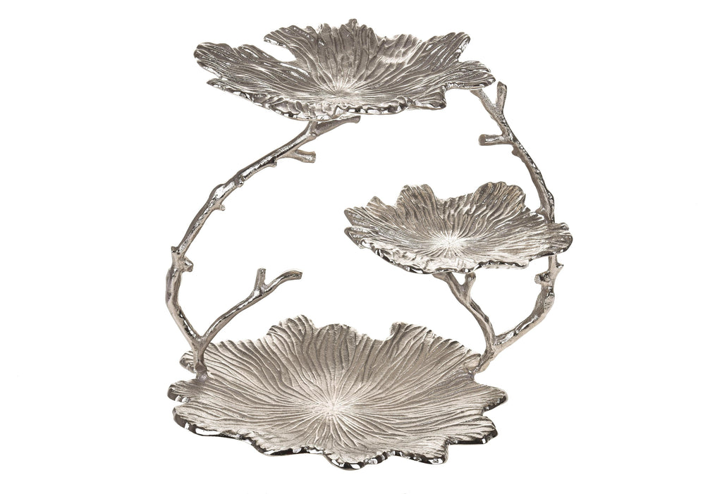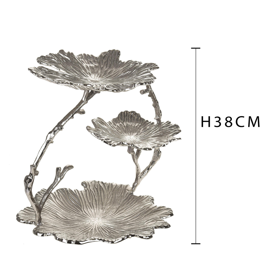 Support à 3 niveaux avec feuilles. Hauteur 38 cm