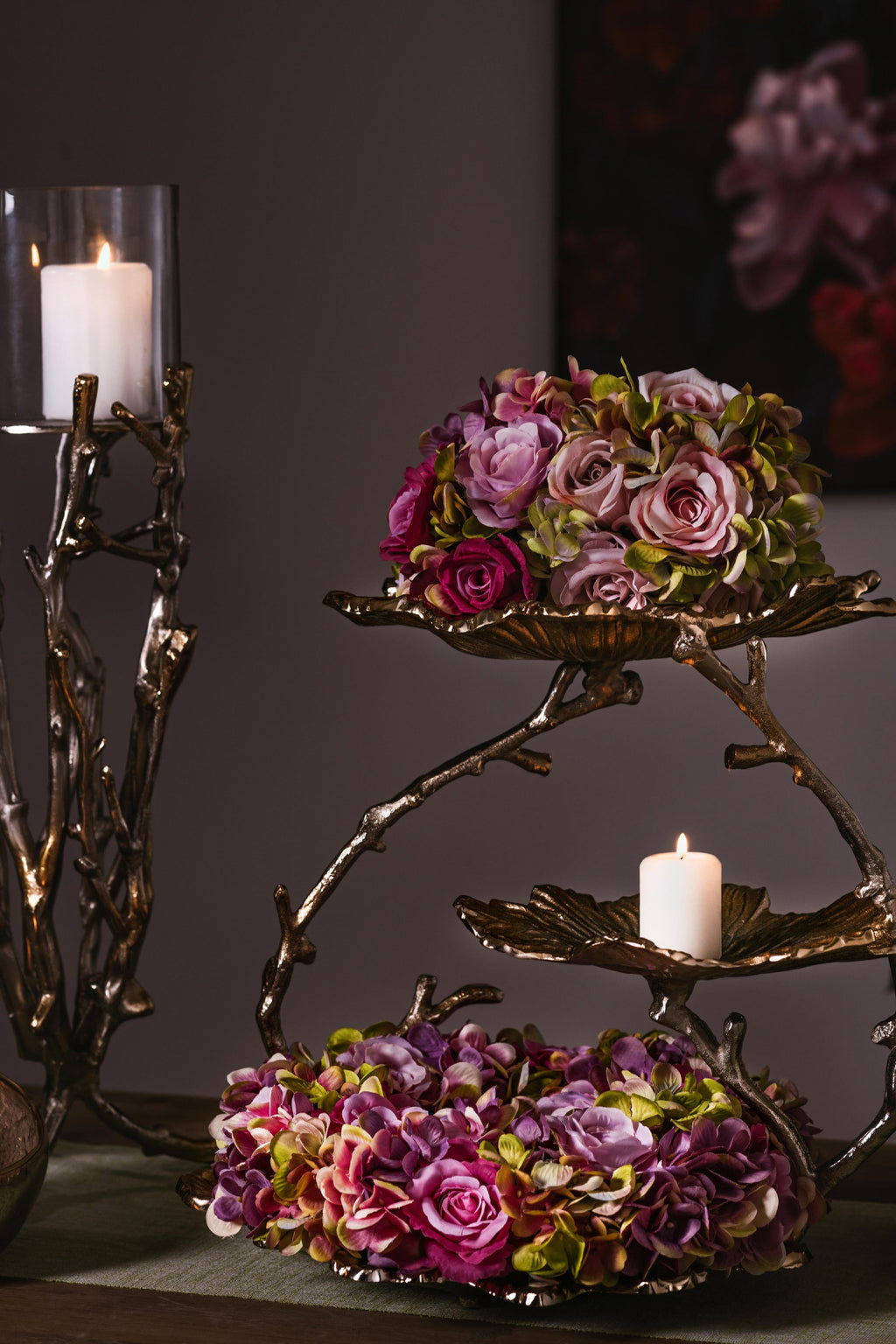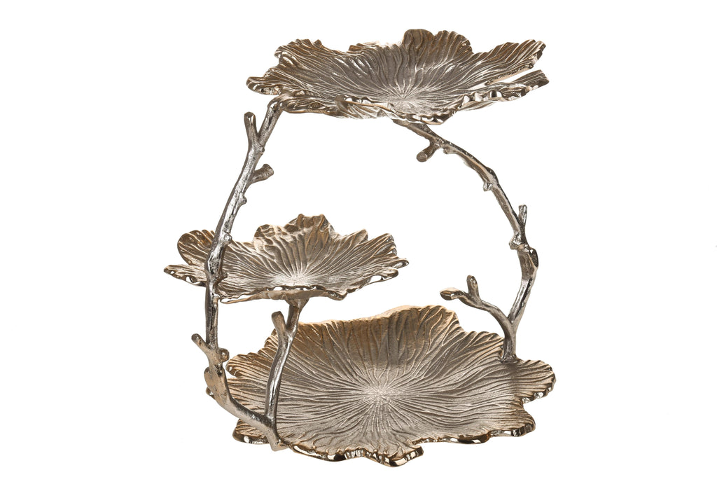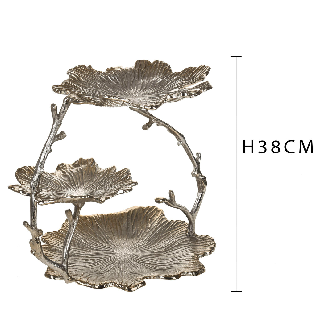 Support à 3 niveaux avec feuilles. Hauteur 38 cm