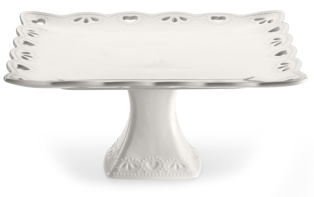 Présentoir à Gâteaux avec Support à Gâteau Carré 31x31 cm Porcelaine Perforée Kaleidos Juliet Blanc