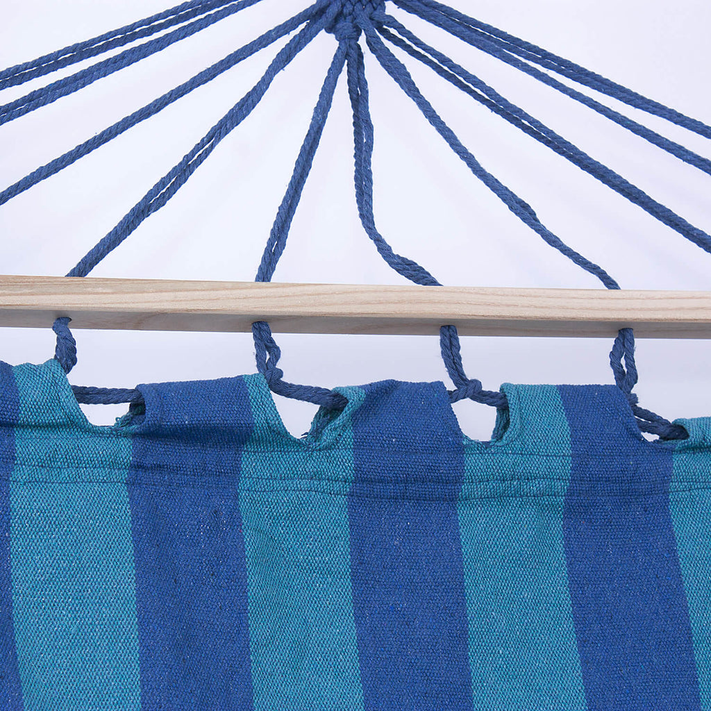 Hamac de jardin 100x200 cm en polycoton bleu et turquoise et bois de sapin