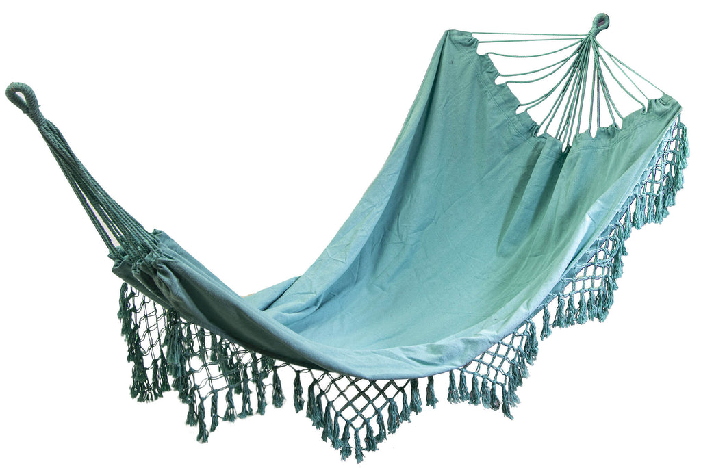 Hamac de jardin 2x1,5m en tissu avec franges vert d'eau