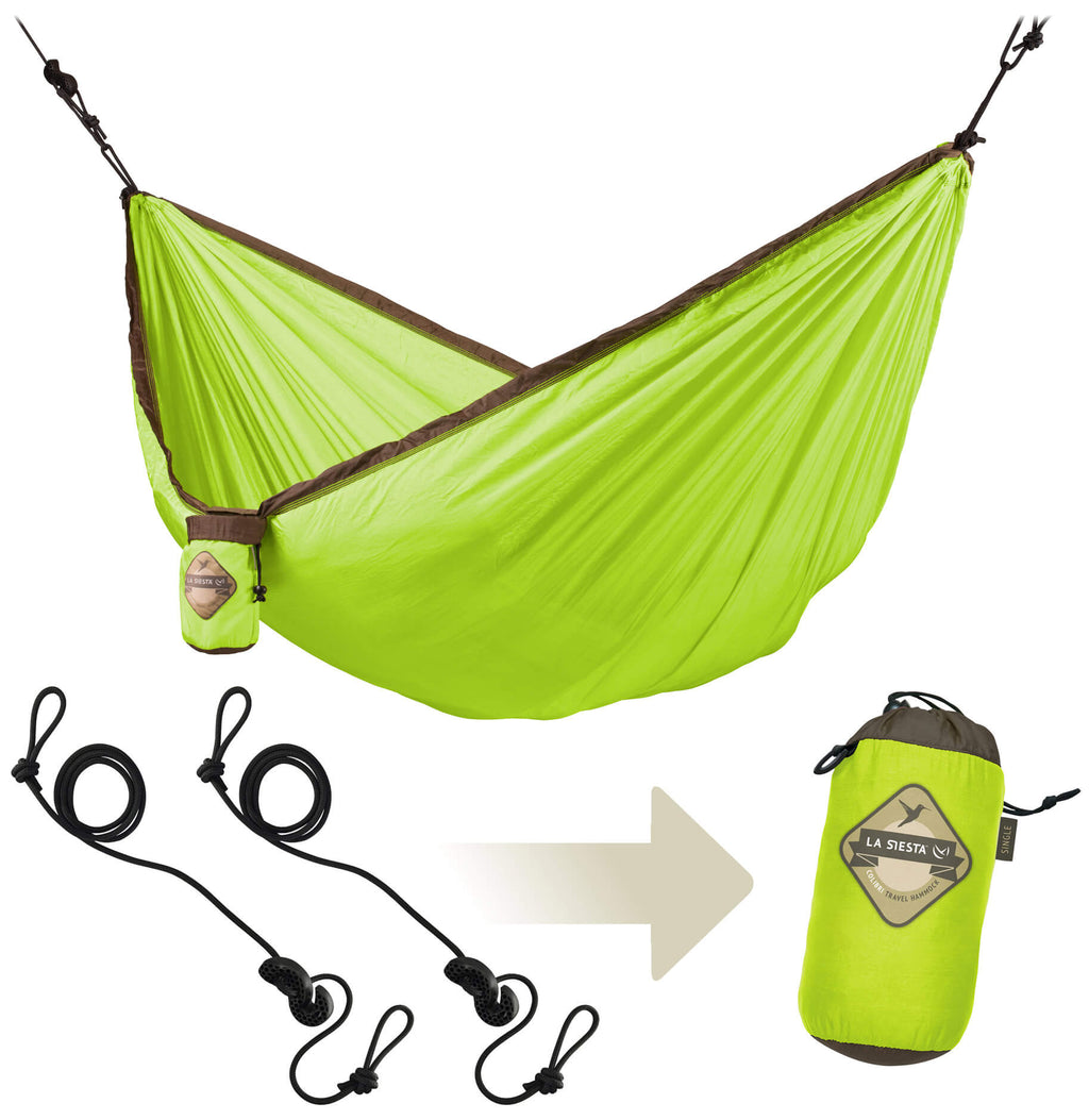 Hamac de voyage simple en polyamide 150x250cm 180Kg avec fixation La Siesta Vert
