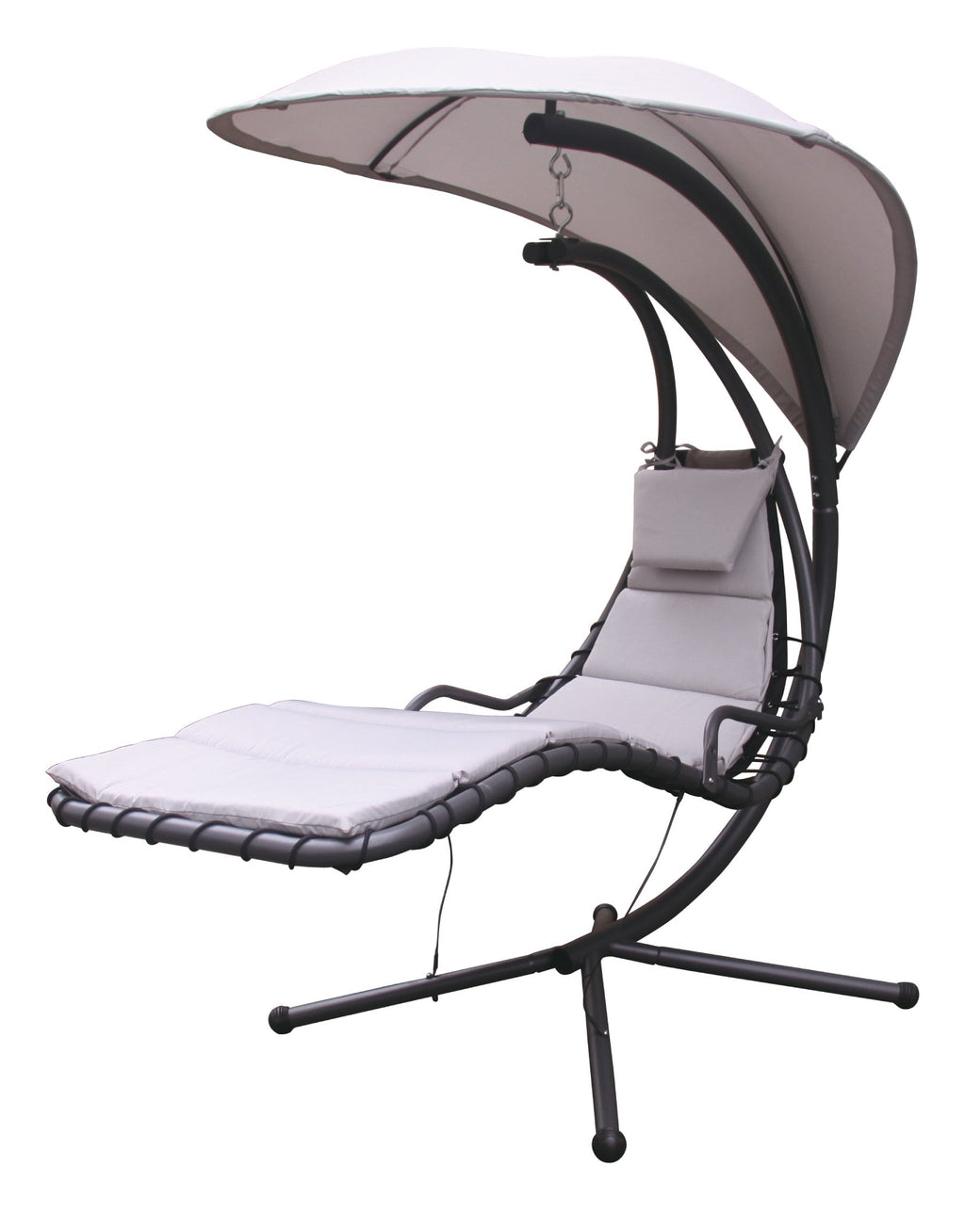 Amaca Dondolina da Giardino 200x125x195 cm con Cuscino Poggiatesta Grigio Chiaro