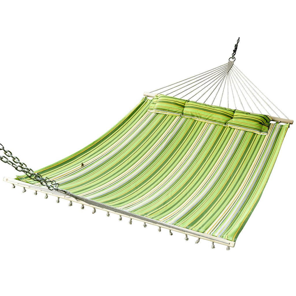 Hamac double en coton 284x140 cm à rayures vertes, jaunes et blanches